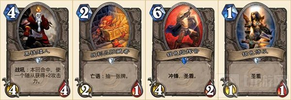 冲锋加圣盾,近乎完美的组合。你可以用它打掉任何不足4血的随从,剩下的4/3属性往往还能换掉1个随从。这个随从身上的圣盾是由你控制的,你的对手无法用1血小怪撞掉它。因此在大部分卡组里,银色指挥官都是必选的2张牌。