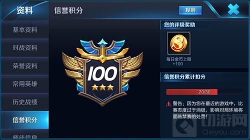 玩家在游戏内,所有的信誉积分扣分,都会被记录在信誉积分累计扣分槽中。一旦信誉积分累计扣分达到上限(30分),将会立即对该玩家进行禁赛处罚,在一定时间内禁止参与 多人匹配与排位赛。