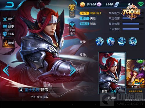 韩信也是一个长期处于热门榜的英雄,他的获取途径比较特殊,通过钻石夺宝活动抽奖获得,对于脸好的玩家来说可以轻易获取,但是某些脸黑就难说了,不过依旧挡不住玩家喜欢使用他。他也是比赛和匹配中玩家都喜欢使用的英雄之一,他敏捷的身手,以及超高的输出伤害制霸前中后三期,操作也不是特别难,很容易让玩家接受他。