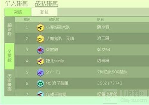 以下球球大作战战队排名是7月7日按奖杯数量排列: