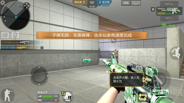 火力无限大乱斗顾名思义就是但弹药无限制的对战,在火力无限的对战中玩家只要一开火就不会停止射击,在火力无限的对决中没有点射和连发,只有开枪冲锋的走位和击杀。
