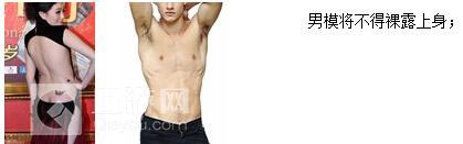 3.女模不能只穿比基尼及类似内衣的服装或不穿内衣;