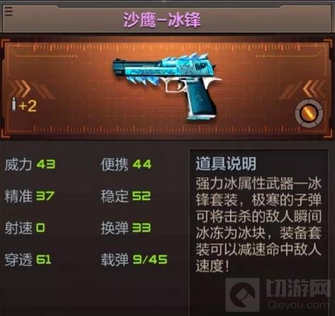 优点:沙鹰-冰锋的能力可不一般啦!能在击杀的敌人瞬间将其冰冻成冰块,简直是这个夏天的最佳解暑利器!何况拥有冰锋套装还可以点亮特殊技能哦:减速命中敌人的速度,还有谁能阻止你!这么好的击杀机会都给你了!速度,就是决定命运的时刻!不开枪太对不起自己了!