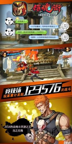 《镇魂街》手游继承了漫画的热血PK元素,游戏中设有多重PVP玩法。作为2016年做热血的动作手游,《镇魂街》手游首创双技连招系统,打破了移动手游无脑输出和操作上局限,空中地面双线战斗,彻底释放战斗空间,给予玩家最纯粹、最爽快的战斗体验。据数据统计,测试期内,玩家在竞技场一共进行了123576次战斗,《镇魂街》手游的玩家果然都是格斗狂人。