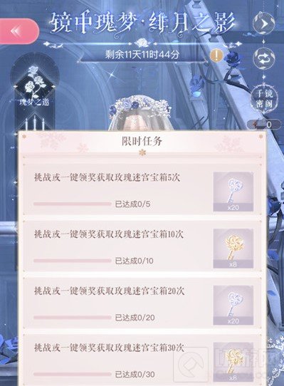 3.【玫瑰迷宫】每日可随意挑战,只有完成一轮挑战后,才能开启新一轮迷宫挑战。若挑战中途退出,再次返回时可继续之前尚未完成的挑战。