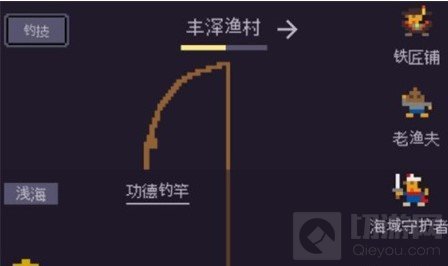 三个NPC都有任务,铁匠修房子,老渔夫钓东西,海域守护者是打怪的,目前打怪需要先做前两个任务搞到鱼竿(由于概率还是过低,推荐看3个广告获得功德买功德鱼竿,也可以勉强用着钓出德灵鲟,吃了有功德)和小火球神通,目前极限3级,45点伤害。