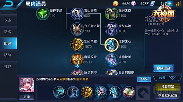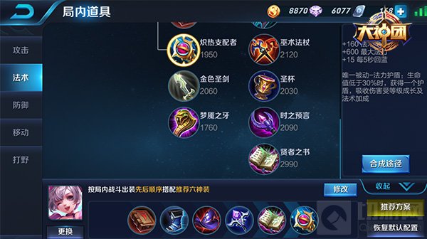 半肉辅助建议出冰霜法杖,秘法之靴,军团荣耀,痛苦面具,冰霜之心,贤者之书