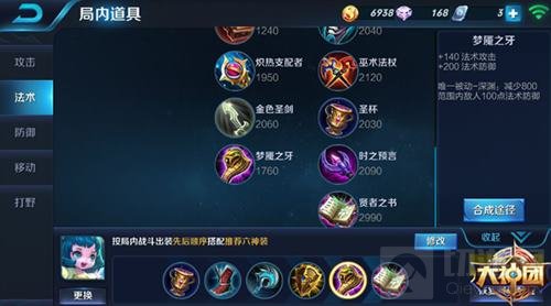 梦魇之牙可以减少敌方英雄的法术抗性,提高蔡文姬的输出。