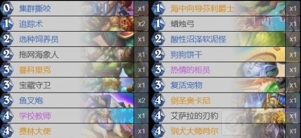 3费:*曼科里克丨热情的柜员x1丨鱼叉炮x2丨复活宠物x1丨宝藏守卫x1