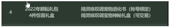 精灵咏叹调宠物进化书(帐号绑定)、精灵咏叹调宝物神秘礼盒(可交易);