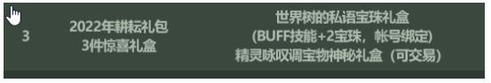 世界树的私语宝珠礼盒、(BUFF技能+2宝珠,帐号绑定)、精灵咏叹调宝物神秘礼盒(可交易);