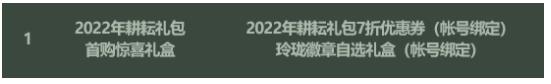 2022年耕礼包7折优惠券(帐号绑定)、玲珑徽章自选礼盒((帐号绑定);