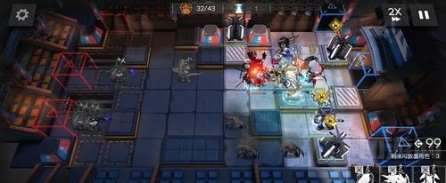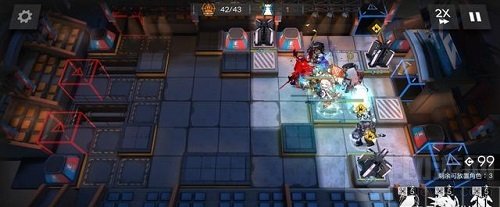 3、开局先部署山冲上攻击方便开图,然后部署红蒂冲上攻击,继续开图,之后部署核心的棘刺冲下攻击,这个是本关通关的关键与核心输出点。