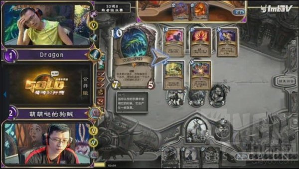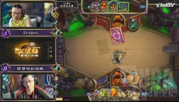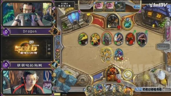 第三场狗贼的圣骑士对阵Drogon的龙战,这局Drogon手很顺,利用龙战的rush能力养出了8攻狂战士,将狗贼的骑士压到13血,并拿着吼爹+化血为脓等待斩杀,但随着狗贼一口紧急治疗将自己奶回20血开始,Drogon开始解场求生存,但随着狗贼末日接女王稳住场面,龙战打出GG,比分战成2:1。