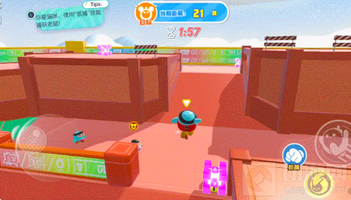 老鼠是目前来说比较难玩的,个人建议是不要无目的性的乱跑,而是去一些需要2~3次跳跃才能到达的一些高地,站着等人来,然后空跳躲飞扑,或是绕一圈回到原地,再或者直接前往下一个高地(要对地图比较熟悉),如此拖着时间就好。当然,对于初级选手来说还有更简单的方法,就是一直跑外圈,绕着转就行了。