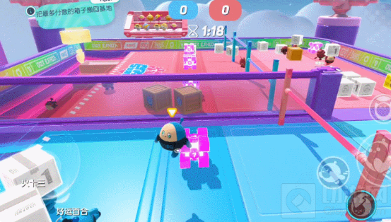 1、巧用道具运箱子,干扰对手夺胜机比如在搬箱子这种积分赛中,场地会有一些道具可以让我们进行高段跳跃,为了胜利,这种时候我们要快速布置道具,让自己和队友都能快速搬运方块得分。