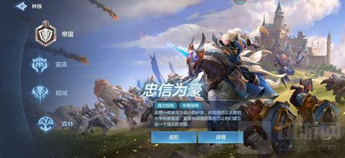 四个不同的种族,帝国,蛮族,暗域,森林,这四个种族分别对应了魔兽争霸里面的四个种族,人族,兽族,不死族,暗夜精灵。四个种族其优势也是比较的类似,帝国(人族)的综合作战能力,蛮族(兽族)的前期对抗能力,暗域(不死族)的后期作战能力,森林(暗夜精灵)的魔免与控制能力。这四个种族的综合能力也是与魔兽争霸3类似。
