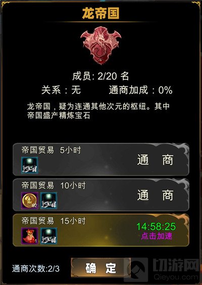 有“贸易关系”的国家会有额外的通商奖励加成;“敌对关系”国家则表示无法通商,且会在下次帝国战中与其对抗。