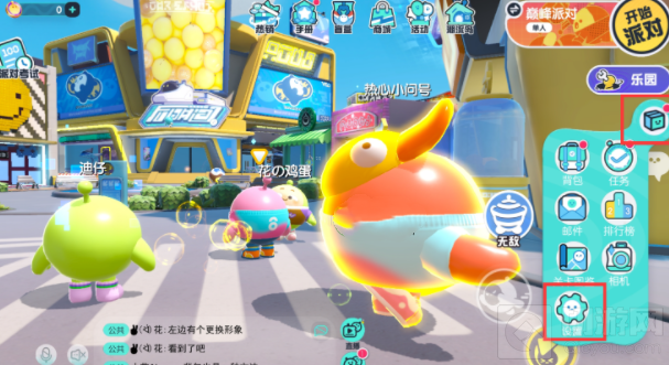 1、首先,进入游戏后,在首页点击最右边小箱子的图标,然后点击下方出现的设置图标,进入游戏设置界面