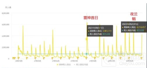 可以看到夜兰首日流便直逼绫人温迪卡池的巅峰数据,已经超过了4亿的水平线。