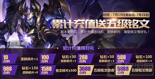 新英雄上线,记得充值更加划算噢!累计充值最高得五级铭文鹰眼!
