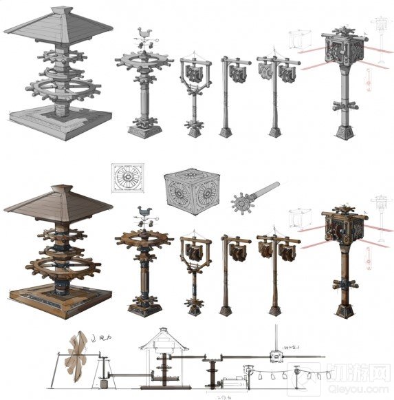 首先是这张关于传动装置的设定,极具古代木工智慧的写实结构,以及搭配风力动能的联动设计,标志着“自动化”或许将成为《帝国神话》DLC里的核心关键词之一。