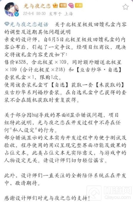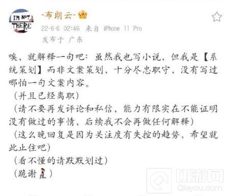 关于澄清微博,布朗尼声称自己只是系统策划,而非文案策划,并没有参与任何文案设计。但是,细心的大家发现,这位普通的,且已经离职的小小的系统策划,和光夜前画手夜夜互关,且有多名画手关注了这位布朗云,布朗云本人也关注了光与夜之恋,并且转发了内测微博。
