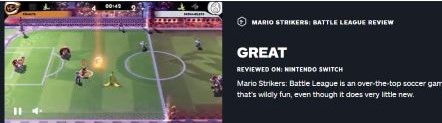 IGN认为:《马里奥足球:战斗联盟》是一款非常有趣、夸张的足球游戏,尽管它几乎没有什么新意。