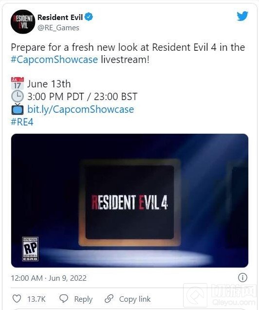 卡普空将于北京时间6月14日早上6点召开发布会,届时将会深度介绍已公开游戏的更多情报内容。而今天,《生化危机》官方推特发布推文,确认不久前公布的《生化危机4:重制版》将会亮相此次卡普空发布会!