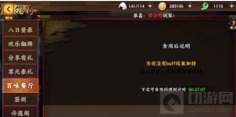3.用餐获得的随机buff持续30分钟,玩家只能获得一个来自于百味餐厅的buff,不可叠加。