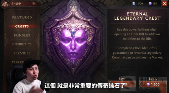 然后我们继续往下看,这个就是臭名昭著,哦不,是非常重要的传奇钥石了,一个是160紫水晶,十个是1600紫水晶。我第一次看到这里的时候,肤浅的认为一次买十个应该要便宜一点,对吧。但不是的,设计师他只是怕你数学不好告诉你,160x10=1600。