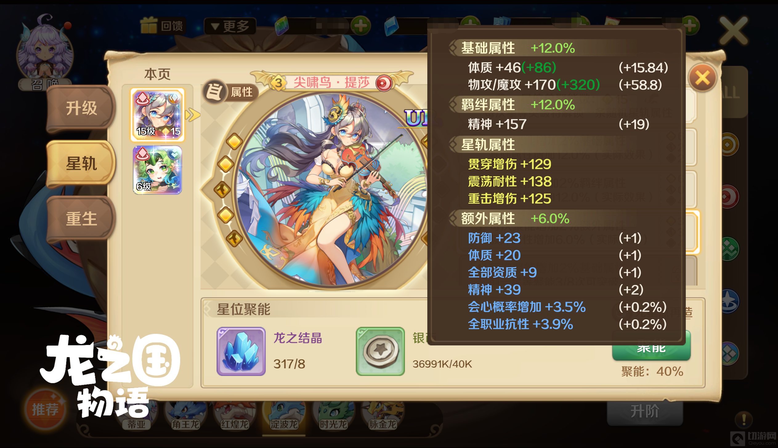 成功聚能6次时,我们就可以使用SSR龙晶进行第二次星等突破——突破后每次聚能成功将提升2%羁绊属性。以此类推,第三次星等突破后每次聚能成功后将提升2%额外属性。