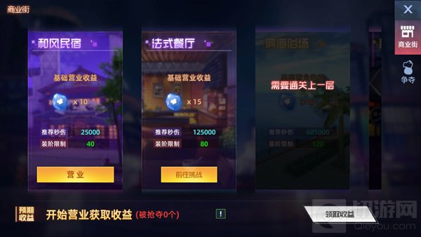 随着玩家能力越大,挑战更高级的商业街,说产生的收益也会更高。