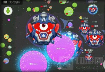 在游戏过程中大家都会发现有些人在开局没有多久就能够将自己的球球变大很多,其实这里头是有技巧的,不少玩家当己方的气球变的比绿色尖刺大多了后都不敢接近,其实绿色尖刺除了为小球提供避难场所之外,打球还可以通过撞向绿刺来分裂出球,这些球会使你重量增加。