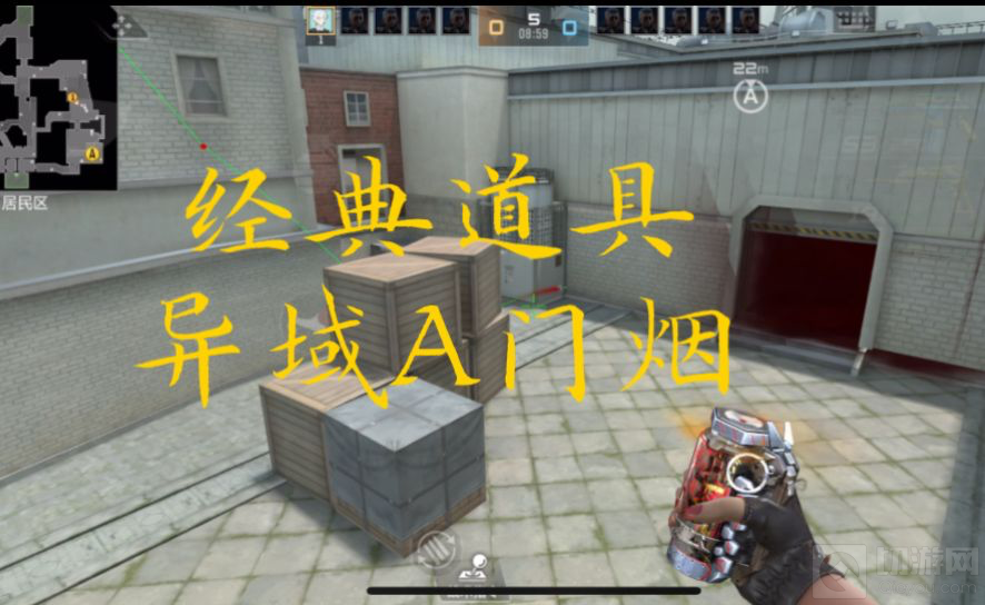 在异域小镇(重制)中,A区那些很高的建筑物都是实体建筑,而不是可以穿透的贴图。因此,在重制版中,丢A门烟的难度提高了一些。其实丢A门烟的方法可以有很多,本文给大家介绍的方法是比较实用的,容易掌握并派上用场。