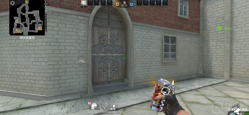 走到A大,看到A门再丢A门烟一定是来不及的。所以,在匪家丢出A门烟是更好的选择。下面给大家介绍丢A门烟的方法。首先是站立位置,紧靠着匪家显眼的木门站就好了。