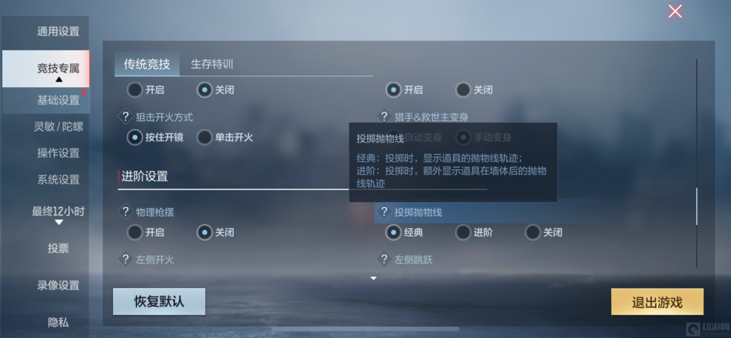 两种方法瞄准的点位倒是大相径庭。原版的异域小镇A门烟找瞄准参照物会容易很多,首先大家注意把设置中的投掷抛物线设置成经典的。