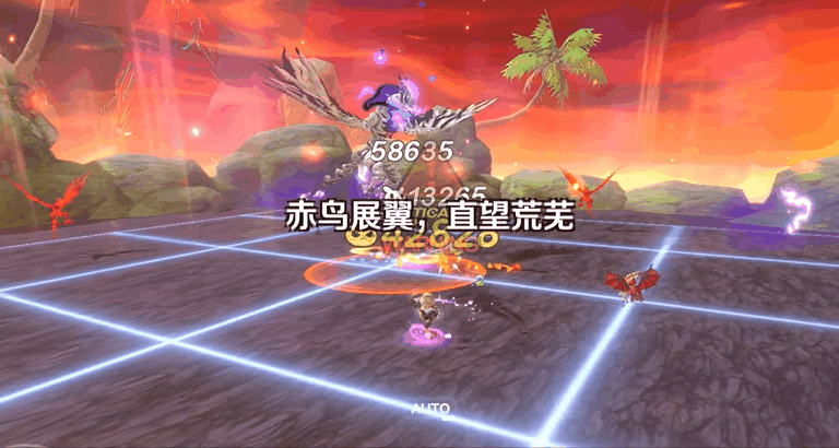 当出现“赤鸟展翼,直望荒芜”时,Boss随后会释放十字直线技能攻击;当出现“青鸟振翅,斜看荆棘”时,则是斜落石袭击。
