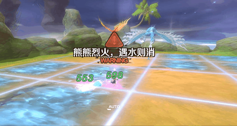 出现“熊熊烈火,遇水则消”提示时,需踩到水波的格子;出现“轰轰雷鸣,遇水则强”时,不要踩到水波格,否则会被雷电所伤。