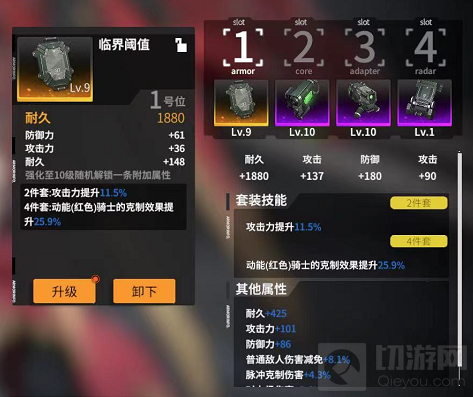 在装甲上潘朵拉[S]作为支援型不像黛西、蜜雪儿这些带有冷凝、感电异常状态效果。所以潴潴还是比较推荐使用【临界阈值】的,直接对动能(红色)怪物起克制作用,提升攻击效果。
