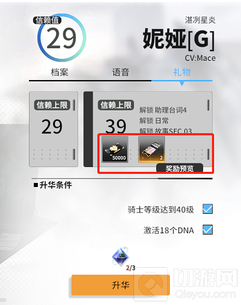 第二、升华,赠送礼物可以提升好感度等级,但好感度每升10级都必须通过升华才能继续提升。和其他游戏的阶段性一样。