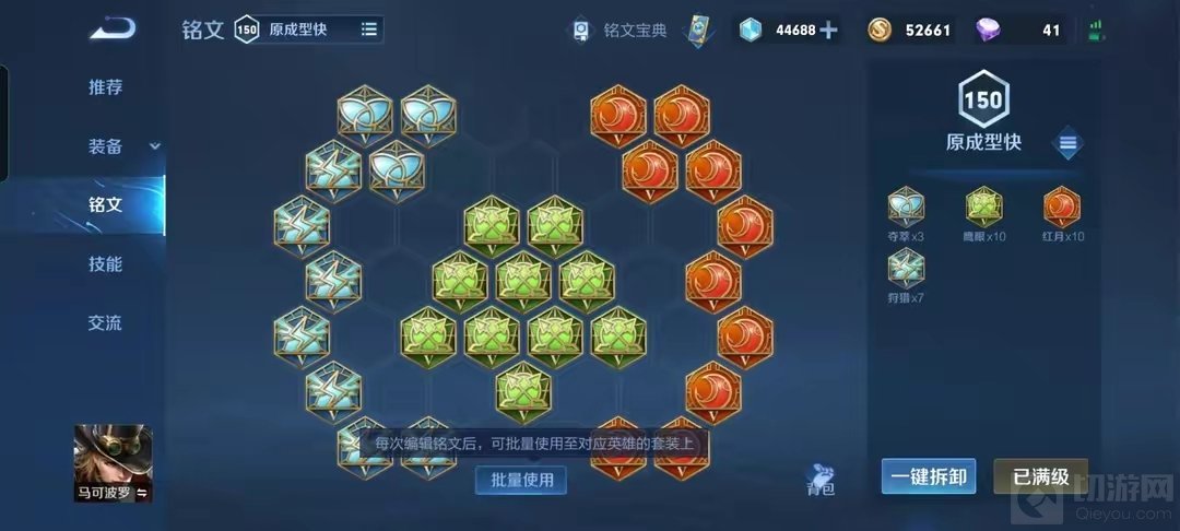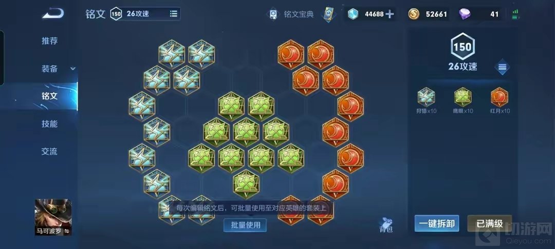 铭文选择:两套铭文,第一套铭文拥有一定的续航。第二套铭文减少了续航,增加了拉扯能力和提前一级拥有最高攻速档位。