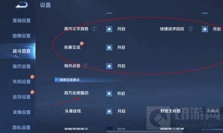 2.这里的局内交流一定要全开,保证在对局中能有队友们进行正常交流,其次敌人描边和头像连线都要开启。