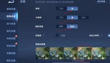 1.这里要选择开启高帧率模式,分辨率选择高,相机高度选择标准,然后画面总质量一般选择系统推荐的。