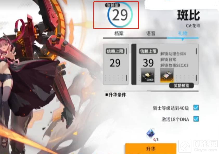 1.在终末阵线中,礼物可以在骑士档案中使用,当骑士与玩家的信赖值达到一定程度后,玩家可以给骑士升阶。