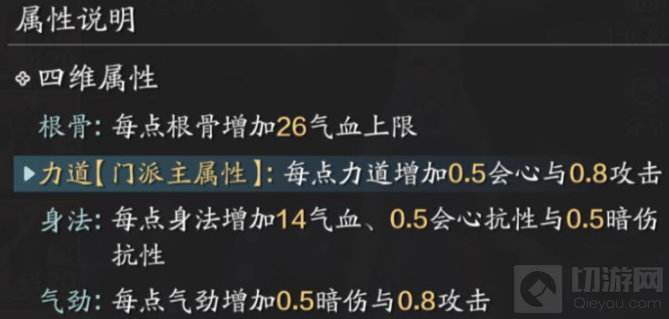 受门派定位影响,从龙的两大主属性为力道和会心。