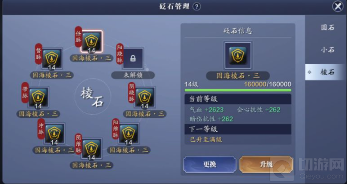 三角小石选择方面,以攻心小石为佳,月卡玩家可以考虑先以三势小石过渡,三势小石可以通过天魁币商店购买,每月限购2颗。
