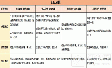 为了方便大家更加清晰的了解四种秘境的门票获取途径、掉落物品、技巧等;