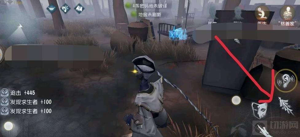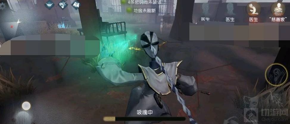 5、当宿伞之魂是白身的时候,也有个技能,就是摄魂,操作摄魂技能的时候,速度变得非常快,同时被摄魂后的求生者不能做交互,这样子就可以快速追击求生者了。