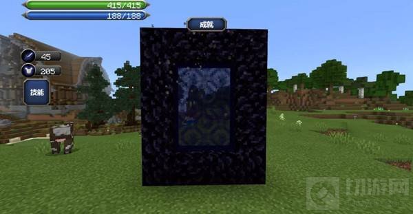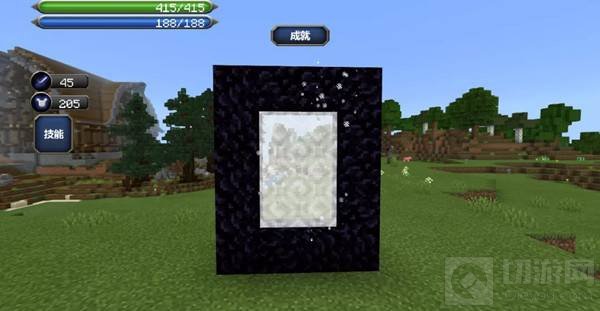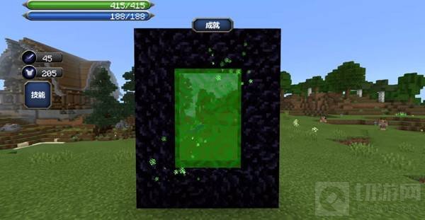 然后用刚刚获得的钥匙代替打火石“点燃”黑曜石,即可生成这个绿色的传送门。